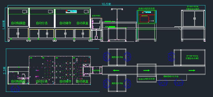 BT-2113B2電芯自動面墊分選裝盒生產線擺放圖  10.5*2.3*1.88